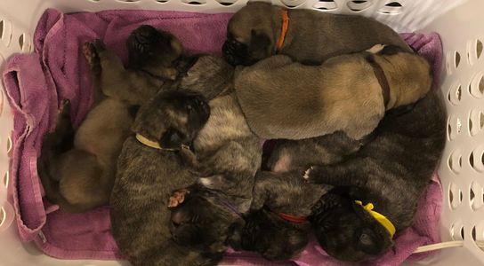 If you are interested please contact me for more information and to get our required Puppy Question Application to fill out and our Deposit Contract if you want to HOLD one of our English Mastiff pups with a Deposit! Most of our puppies are sold before they are born. So don't wait!! We have 9 deposits for our upcoming 2025 - 2026 planned breeding's.