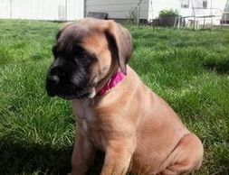 "I was a little nervous about purchasing a puppy over the Internet but was immediately put as ease because Stephanie stayed in contact with me throughout the whole process. She provided frequent updated photos and stories about the latest puppy adventures. One of the best parts was the interaction between some of the other puppy "parents." Many of us have kept in touch and are sharing our experiences with these beautiful babies. When Lord Stanley Kisser (Stanley) finally arrived in MD after a 2 day car ride, I was pleasantly surprised by how well he was already socialized. He is a healthy, happy, big wrinkly boy with a personality that matches his size. This has been the best experience with a breeder ever and I know that Dowdy Farms English Mastiffs is the only place I will get puppies now. Although patience is not one of my virtues, Stephanie made waiting for his arrival an enjoyable experience and it was definitely worth the wait!"