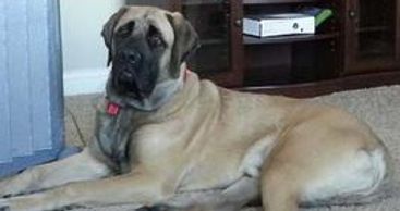 "Our experience with Dowdy Farms has been wonderful. I have always wanted a large breed dog and after some research (and convincing my husband) decided on an English mastiff. After searching on the internet for breeders within driving distance, I came upon Dowdy Farms website. Stephanie was extremely responsive and helpful from the first contact. We could tell from the website, references, and communication with Stephanie that we would be getting a reputable and reliable English mastiff. Tank is a loveable, smart, beautiful dog that we fall more in love with each day. She is social, great with children, other dogs, and loves everyone she meets. We couldn't be happier with Tank or with our experience!"